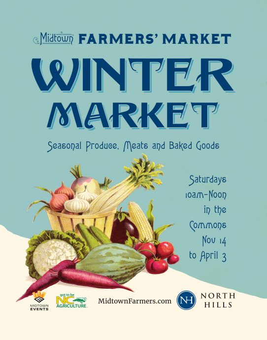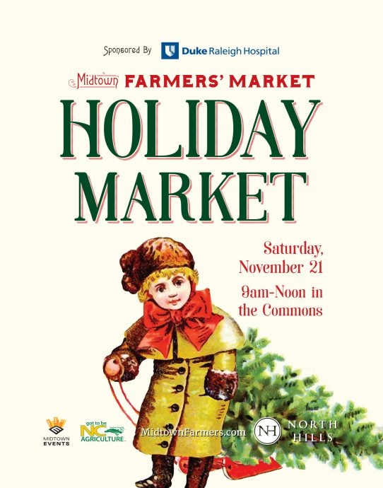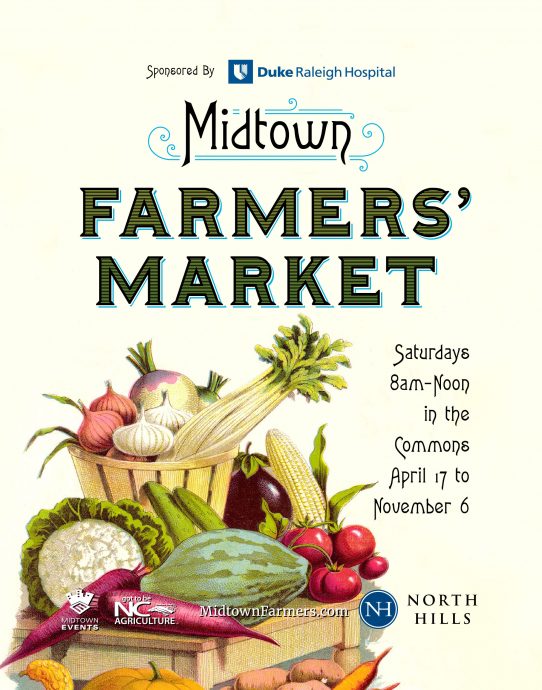While not the oldest farmers’ market in Raleigh, this nostalgic logo makes it seem like the Midtown Farmers’ Market has been around for over 100 years. This stylized, traditional brand is rooted (forgive me for the pun) in seed catalogs and packets from the late 19th century and hearkens back to a simpler time. Vintage engraving-style illustrations and a stained paper background lend authenticity.